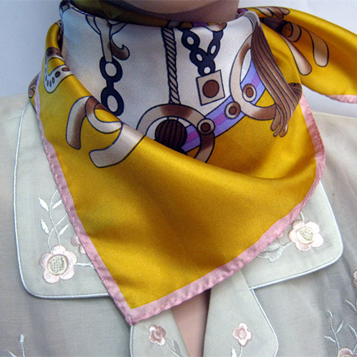 產品描述  100%桑蠶絲大牌圖案真絲斜紋綢小絲巾