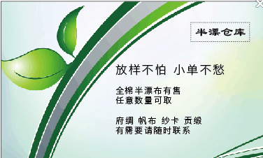 | 產(chǎn)品描述 | 半漂倉(cāng)庫(kù),本白空間 多種全棉布,公司備有半漂現(xiàn)貨,方便放樣做小單 有需要請(qǐng)隨時(shí)聯(lián)系 |