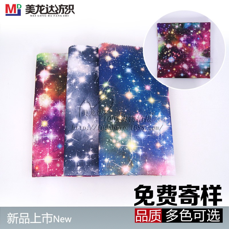 | 備注 | 印花帆布星空圖案布料雙肩包美龍達滌綸印花帆布七彩轉(zhuǎn)移印帆布面料批發(fā),更多產(chǎn)品詳情請去我司官網(wǎng):(www.mldf |