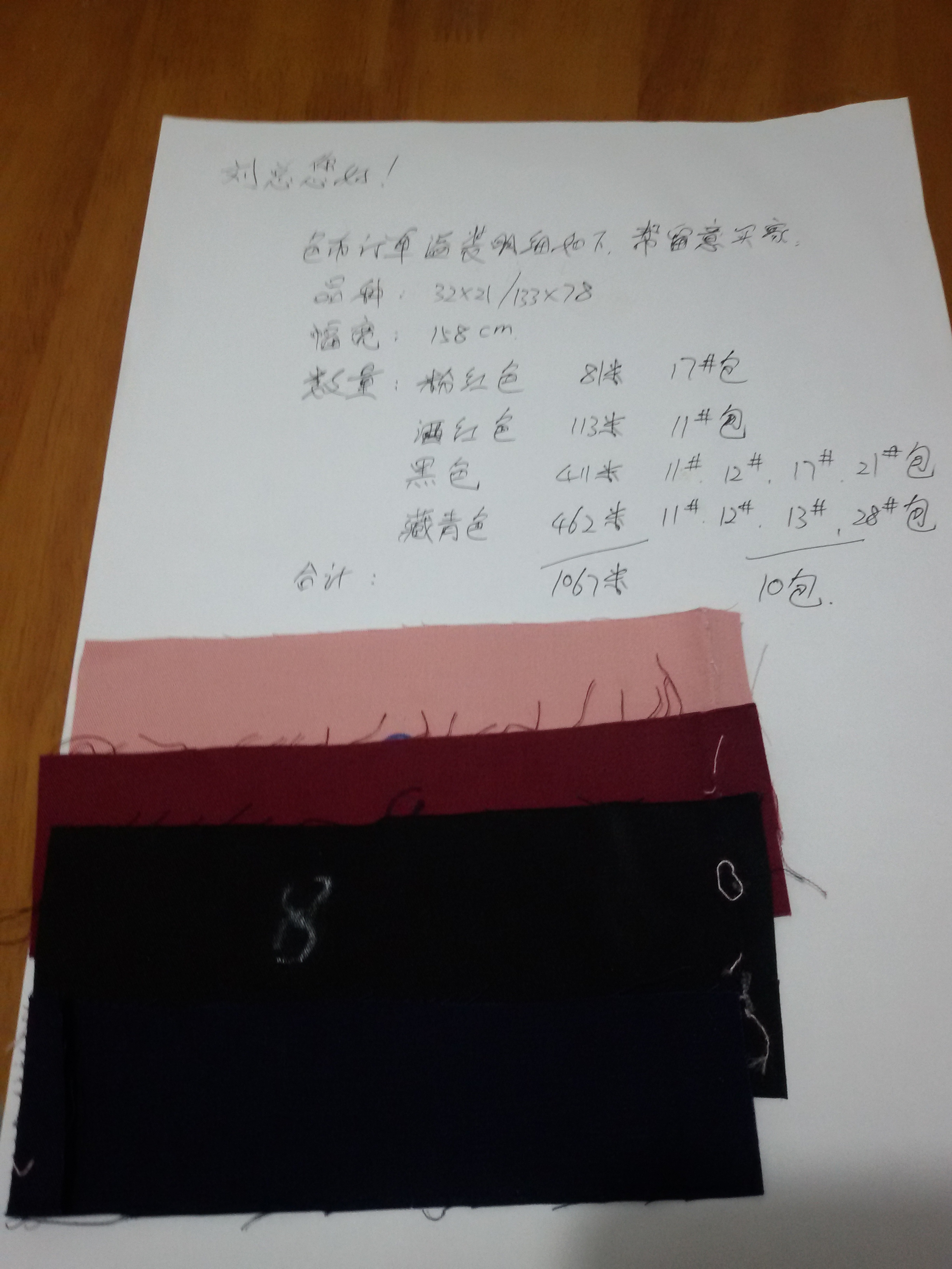 面料供貨詳細(xì)信息