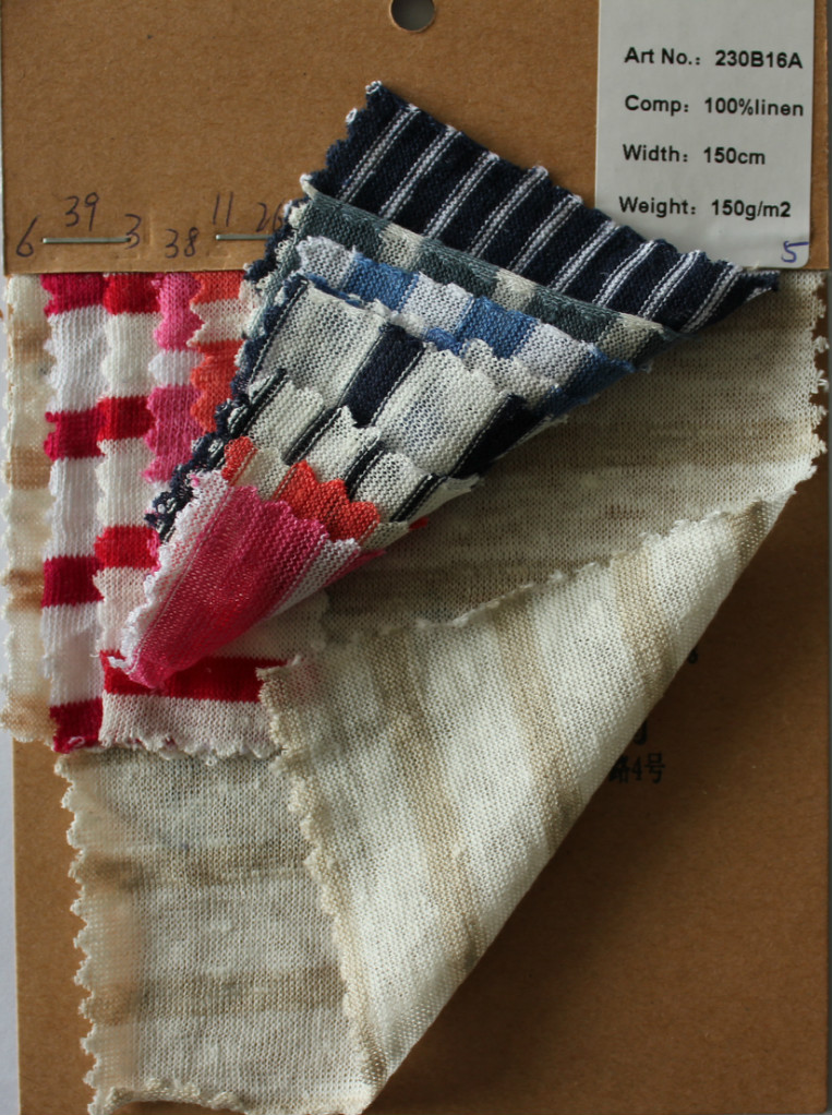 | 產(chǎn)品名稱 | 亞麻針織色織條紋面料 |