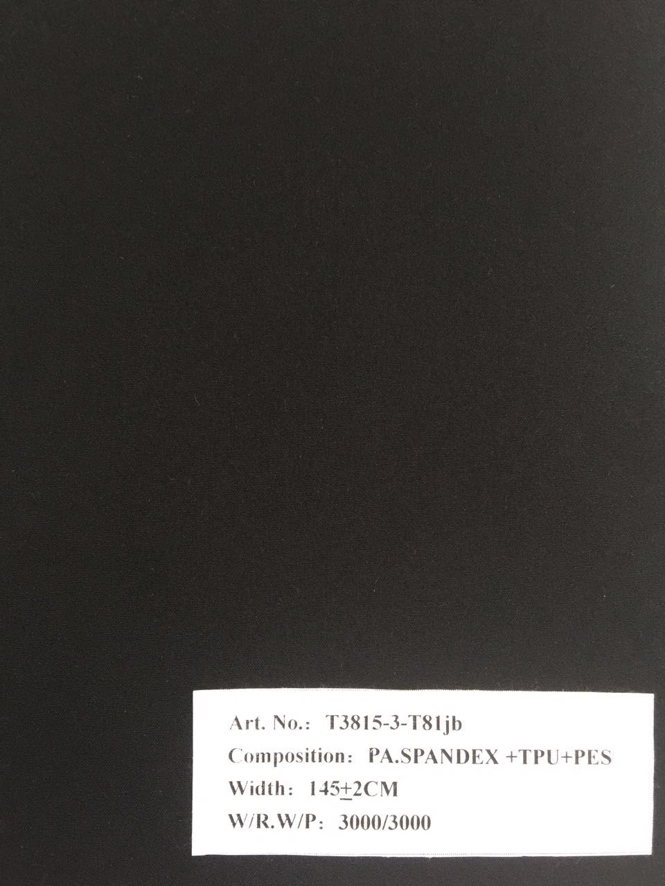| 產(chǎn)品描述 | 品名:尼龍四面彈+TPU+提花滌綸布 編號:T3815-3-T81jb 成份:PA.SPAndEX+TPU+PES 幅寬:145±2CM |