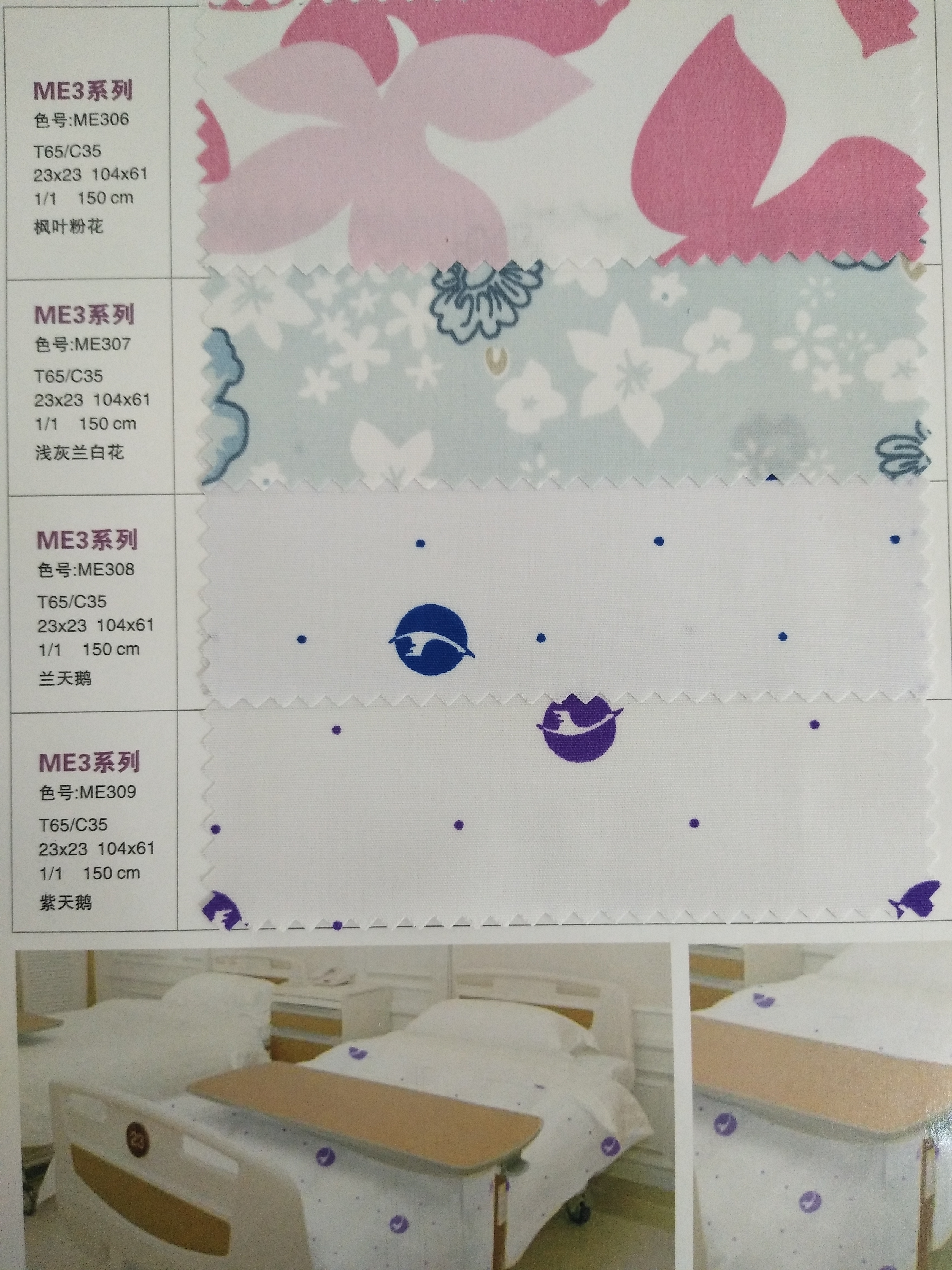 產(chǎn)品規(guī)格 TC65/35 23x23 104x61 1/1 白底印花 現(xiàn)貨醫(yī)用面料