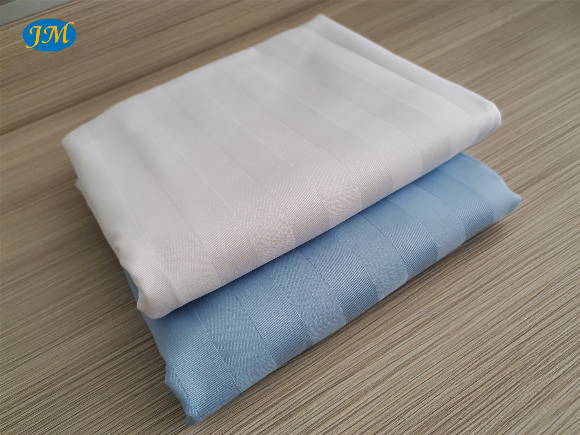 產(chǎn)品描述 CVC染色卡條(淺灰藍(lán)) 無三絲 布面平整 足織足密 適用于酒店布草 高檔床品等
