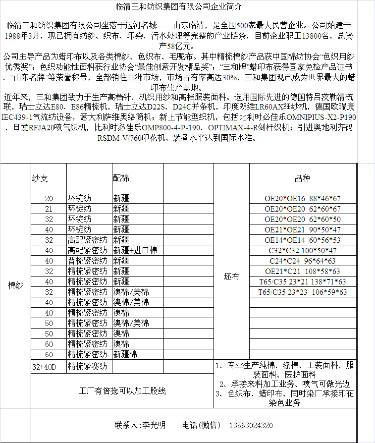 | 產(chǎn)品描述 | 工廠(chǎng)擁有大小劍桿700多臺(tái),常年定織各類(lèi)色織品種 聯(lián)系人:李光明 13563024320 |