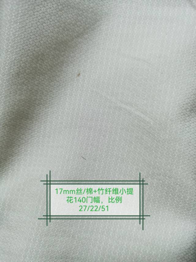 | 產(chǎn)品規(guī)格 | 17姆米絲/棉竹纖維小提花 |