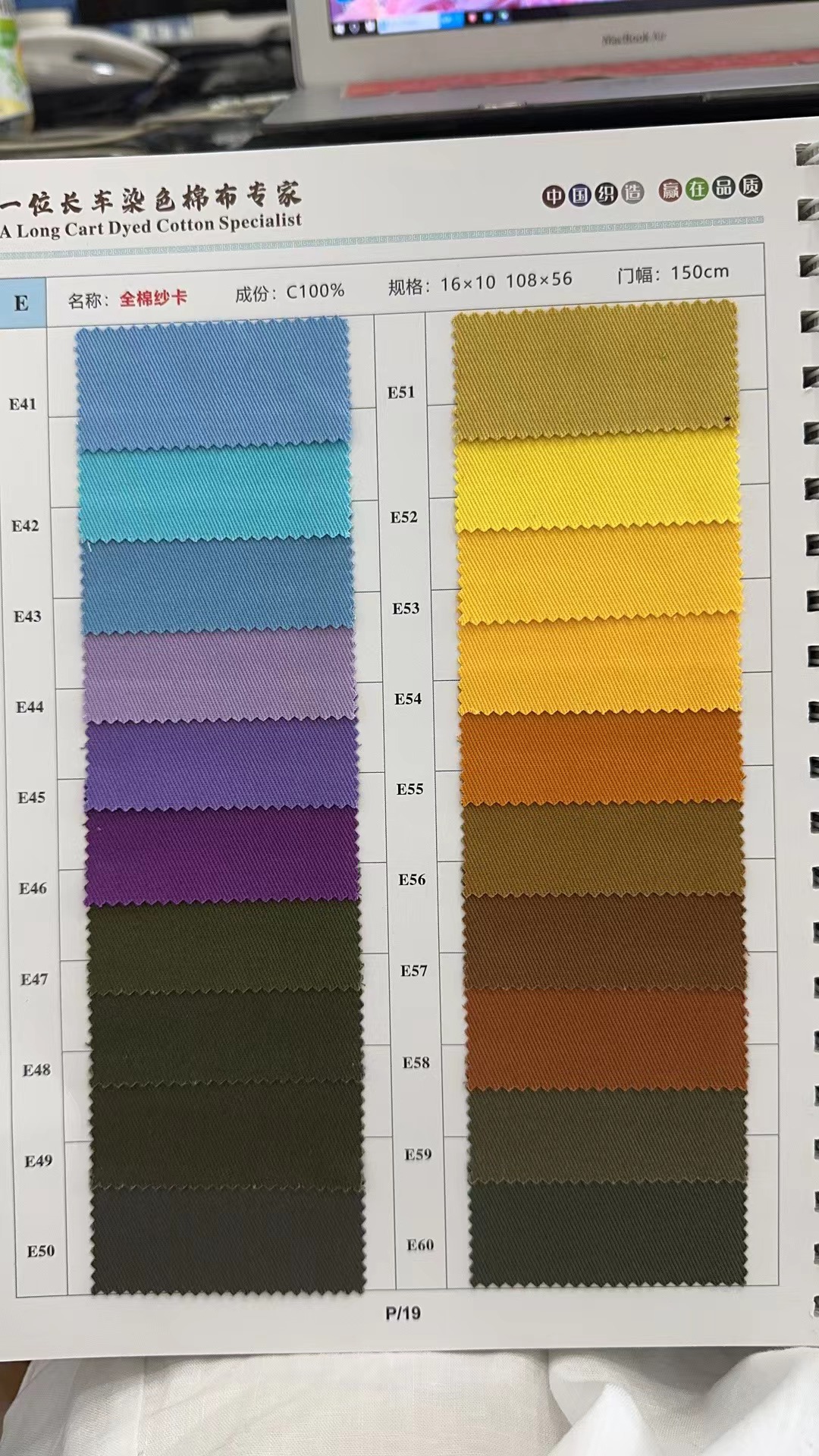 產(chǎn)品描述 全棉紗卡 16*10 108*56 長車全工藝染色 色號齊全,86個色號 適用于工裝面料、休閑裝等