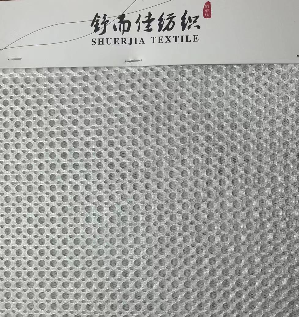 產(chǎn)品描述 5D-001 家紡、箱包、鞋材用全滌高彈透氣三明治網(wǎng)眼布 顏色:自有染廠,染色精準(zhǔn) 幅寬:220CM 克重:180(g/㎡) 厚度:5mm 用途:床墊、圍邊、沙發(fā)、靠墊、抱枕 優(yōu)點(diǎn):特寬幅、布面干凈、疵點(diǎn)少(百米五疵)、開裁損耗?。凰厣珳?zhǔn)、彈性好、交期短、 打卷與包裝可定制; 透氣易洗、經(jīng)久耐用; 產(chǎn)品通過(guò)SGS標(biāo)準(zhǔn)、吸濕快干網(wǎng)眼布;吸濕排汗網(wǎng)眼布;抗靜電網(wǎng)眼布;抗菌防臭網(wǎng)眼布;床品網(wǎng)眼布;鞋材網(wǎng)眼布