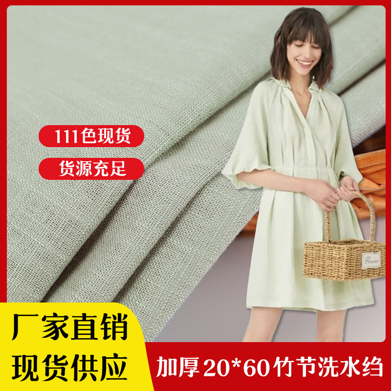 產(chǎn)品描述 D621加厚20*60竹節(jié)全棉洗水縐廠家現(xiàn)貨仿麻襯衫服飾面料