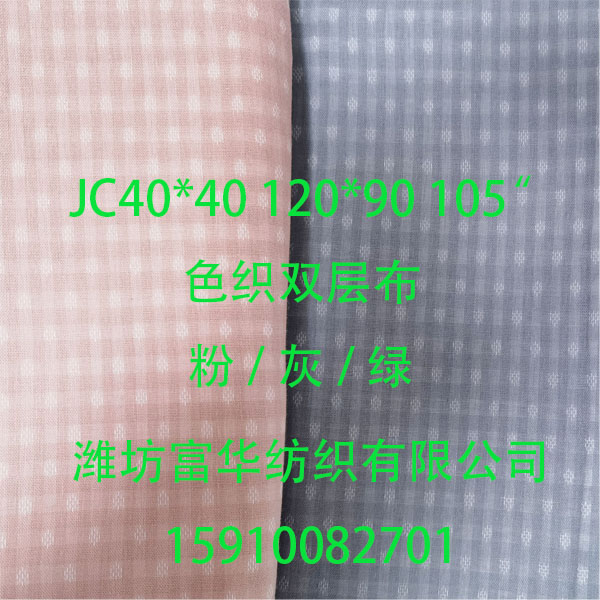 | 產(chǎn)品描述 | 純棉色織雙層布, 粉/灰/綠 現(xiàn)貨銷售,歡迎來電咨詢 |