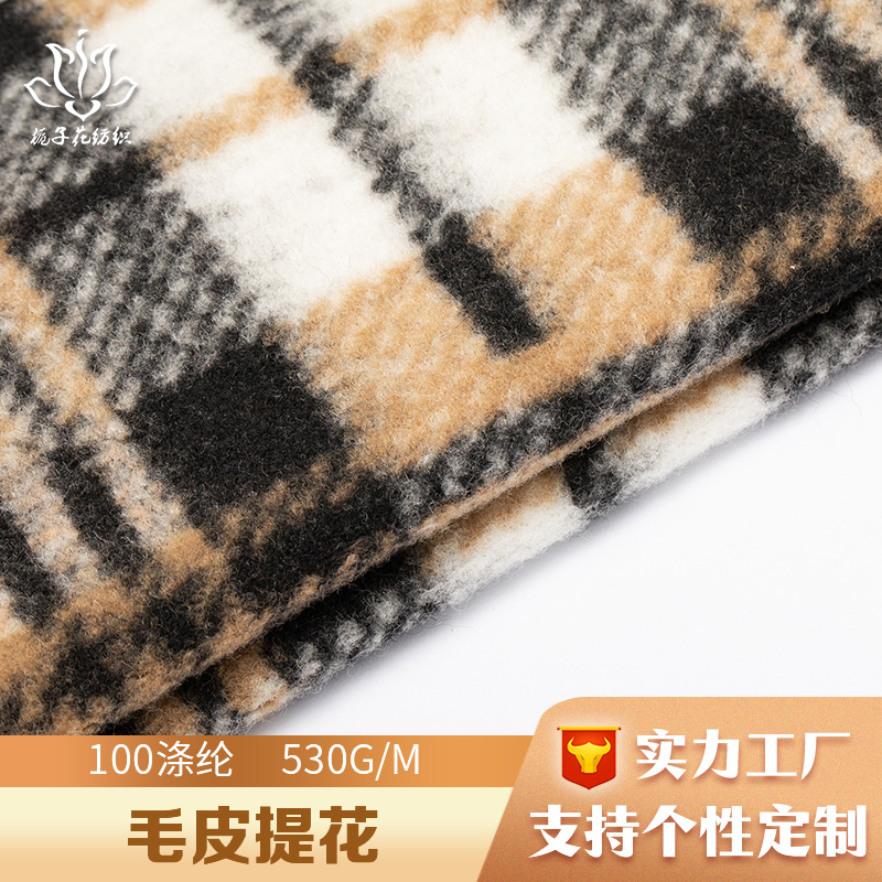 | 產(chǎn)品描述 | 這款提花布是采用滌綸材質(zhì)生產(chǎn)的人造毛皮面料,具有類似羊毛的手感和高阻燃性。每米530克的高克重使這款面料擁有較高的保暖性,而且滌綸也比天然纖維更加耐用、更容易保養(yǎng)。 這款面料通過提花工藝實現(xiàn)了類似虎紋的外觀效果,同時加入黑白駝三色格紋,可以讓成衣展現(xiàn)出更加個性、奢華的效果,適用于多種秋冬時尚服飾設計。 這款提花布由呢絨面料廠直供,小批量定制單可以在7-15天內(nèi)完成交付,大貨訂單的交付時間也在25-30天內(nèi),讓客戶有足夠的時間規(guī)劃生產(chǎn)。現(xiàn)在私信還可以免費拿樣。 |