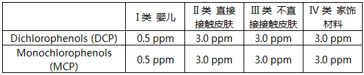 (9)氯化苯酚/Chlorinated Phenols限制列表中增加了:2,3-Dichlorophenol;2,4-Dichlorophenol;2,5-Dichlorophenol;2,6-Dichlorophenol;3,4-Dichlorophenol;3,5-Dichlorophenol;2-Chlorophenol;3-Chlorophenol;4-Chlorophenol這9種物質(zhì),限值見(jiàn)下表: