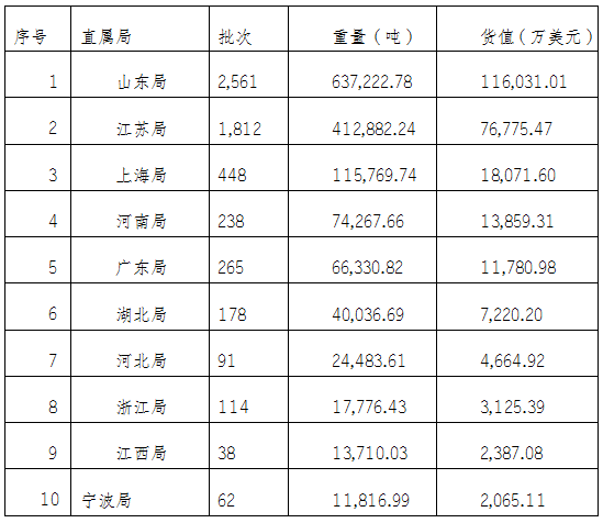表22015年進口棉花排名前十位的直屬檢驗檢疫局