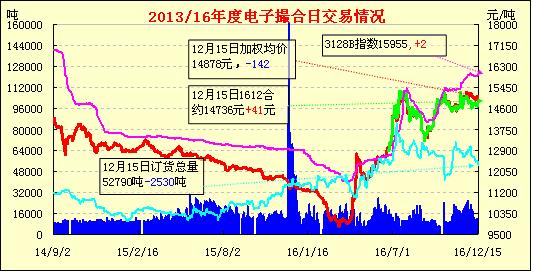 12月15日,電子撮合交易成交量增加,合約均價(jià)漲跌不一,活躍交投主要集于中遠(yuǎn)合同。12月份,湖北省新棉采收接近尾聲。企業(yè)收購(gòu)量不多,加工進(jìn)度已過(guò)半;籽棉收購(gòu)價(jià)格月初有所上升,月末隨著籽棉質(zhì)量下降價(jià)格也開始下跌,皮棉銷售價(jià)格震蕩中略有上行;棉農(nóng)采摘進(jìn)度約80-90%,交售進(jìn)度60%以上。