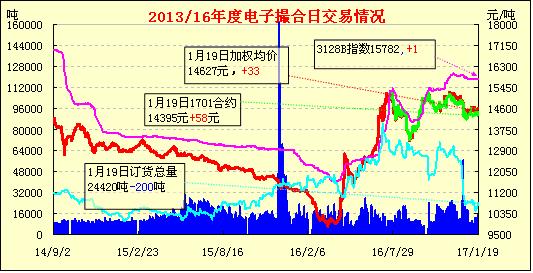 1月19日,電子撮合交易成交量增加,合約均價多數(shù)收漲,活躍交投主要集中于中遠期合同。據(jù)大豐一位私營紡企老板介紹,前段時間因霧霾、雨雪等自然天氣,部分企業(yè)產(chǎn)銷受影響,一月中旬以來,全省大部分地區(qū)放晴升溫,企業(yè)紛紛排鋪訂單,安排生產(chǎn),除了一些小批量春節(jié)前必須交付的單子外,其余的正常供貨性生產(chǎn),企業(yè)也在春節(jié)前增加了產(chǎn)量,盡量不把產(chǎn)銷壓力后移。據(jù)了解,目前該區(qū)市場上棉花供應相對充足,來源尚以內(nèi)地棉為主,但這也只是暫時現(xiàn)象,預計節(jié)后開春期新疆棉涌入內(nèi)地的進度及數(shù)量將會有所加快。