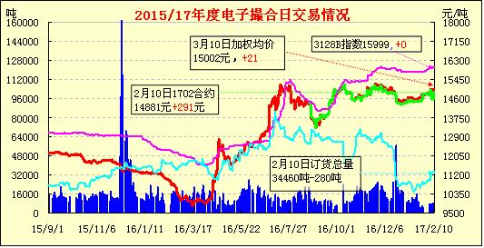 2月10日,電子撮合交易成交量減少,合同均價(jià)多數(shù)收漲,活躍交投主要集中于中遠(yuǎn)期合同。近期棉花走勢(shì)糾結(jié),鄭棉期貨節(jié)后大漲兩天之后,開始顯示出上漲乏力的態(tài)勢(shì)。現(xiàn)貨市場(chǎng)陷入僵局,外盤紐約棉價(jià)也呈現(xiàn)出滯漲的現(xiàn)象,再加上近期美元指數(shù)止跌上行,ICE漲勢(shì)有所遏制。