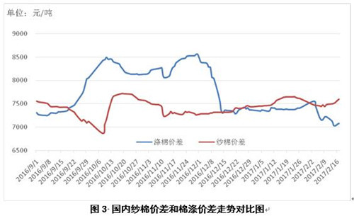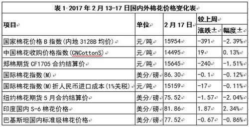 在截至2月9日的一周,2016/17年度美棉出口凈簽約量為5.04萬(wàn)噸,較前周增長(zhǎng)7%,陸地棉裝運(yùn)量為7.82萬(wàn)噸,較前周減少24%;截至當(dāng)周,2016/17年度美國(guó)棉花簽約銷售量累計(jì)241.3萬(wàn)噸,同比增長(zhǎng)60%,裝運(yùn)量累計(jì)133.7萬(wàn)噸,同比增長(zhǎng)39%;印度央行稱下財(cái)年后半段印度通脹水平可能在4.0-4.5%,導(dǎo)致印度盧比對(duì)美元匯率保持堅(jiān)挺,印度棉價(jià)持續(xù)上漲;巴基斯坦棉花供應(yīng)極為緊張,棉價(jià)依然堅(jiān)挺。