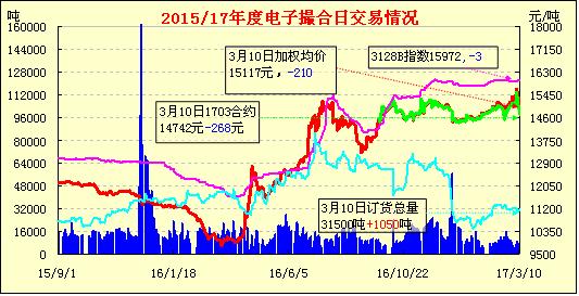 3月10日,電子撮合交易成交量增加,合同均價全部收跌,活躍交投主要集中于中遠(yuǎn)期合同。本周國儲棉輪出,競拍加價幅度高,氣氛熱烈。但川內(nèi)紡企和棉商競拍成交都很少。據(jù)各企業(yè)信息反饋,一是放儲的棉花存放時間太久,內(nèi)在外觀質(zhì)量都大打折扣,但競拍加價卻太高,性價比不高。參與競拍的紡企出價有限,未能競拍到棉花。二是市場仍有相當(dāng)數(shù)量的現(xiàn)貨,據(jù)相關(guān)紡企介紹,近日競拍成交均價都在1.53萬元/噸以上,折3128B棉價約1.65萬元/噸(公定)左右。而川內(nèi)現(xiàn)貨市場毛重送到價格才1.65萬元/噸左右,采購現(xiàn)貨比競拍劃算。