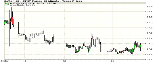 周二紐約期棉微幅上揚(yáng),近月合約終止兩連跌,漲幅在5到33點(diǎn)不等。1705合約收于77.15美分/磅,漲28點(diǎn);1707合約收于78.19美分/磅,漲33點(diǎn)。當(dāng)日1705合約在54美分區(qū)間內(nèi)窄幅波動(dòng),收盤前遇人氣買盤推漲,終收于77.15美分/磅。1712合約價(jià)格亦呈現(xiàn)狹窄走勢(shì),終日保持在52點(diǎn)區(qū)間內(nèi),收盤于75.03美分/磅。美國(guó)德州格蘭德河谷底棉苗已部分發(fā)芽,部分棉田甚至已進(jìn)入第二真葉期,但據(jù)USDA報(bào)告,上周德州暴雨一定程度阻礙了當(dāng)?shù)刂裁藁顒?dòng)。此外,德州潘漢德爾的山火已導(dǎo)致4人死亡,燒毀近50萬英畝的土地。
