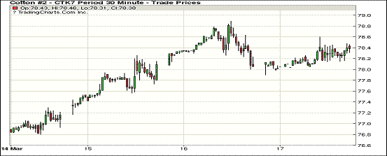 周五美元走軟,紐約期棉成交清淡但小幅收高;1705合約收于78.36美分/磅,漲19點;1707合約收于79.38美分/磅,漲26點。當日主力合約開市后價格走勢平穩(wěn),盤中遇少量買盤支撐上漲,回落后依然在漲幅空間交投。至本周,美棉出口銷售數(shù)據(jù)維持強勁,總簽約量達到預計出口量的95%,為近五年來最高,裝運總量達到預計出口量的58%,超過近五年平均。