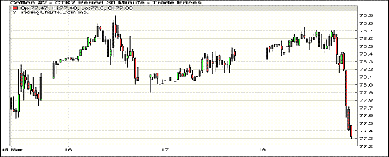 周一紐約期棉尾盤下挫,遠漲近跌,其中1705合約暴跌。1705合約收于77.33美分/磅,跌103點;1707合約收于78.54美分/磅,跌84點。當日1705合約開盤后一度漲至78.75美分/磅,后遇賣盤壓力收跌于77.33美分/磅;1712合約終日保持窄幅波動,收盤僅斬獲4點增幅。收盤前美元指數(shù)回升使得大宗商品再次承壓,連累陳棉合約普遍下跌。澳棉主產(chǎn)區(qū)(新花吐絮階段)遇暴洪侵襲。此外,美國德州格蘭德河谷地及德州南部棉區(qū)也因降雨暫停播種。目前,格蘭德谷地已有70%左右的棉苗播種完畢。