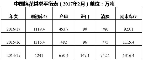 元宵節(jié)后,新疆交售全部結(jié)束,內(nèi)地交售工作逐步展開,交售價格保持平穩(wěn),交售量較少,進度快于去年同期。據(jù)中國棉花協(xié)會統(tǒng)計,全國平均交售進度為98.5%,同比加快1.5個百分點;平均交售價格為6.92元/公斤,同比上漲24.68%,環(huán)比略減。2016年棉花價格上漲,棉農(nóng)收益較好,但新疆補貼尚未完成,2017年度目標價格政策公布較晚,植棉意向較前期下降;內(nèi)地交售進度快,市場逐漸回暖,植棉意向增加。據(jù)中國棉花協(xié)會調(diào)查,全國植棉意向面積為4247.5萬畝,同比增長2.85%,環(huán)比下降0.31個百分點。