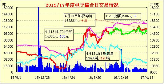 4月13日,電子撮合交易成交量增加,合同均價多數(shù)上漲,活躍交投主要集中在中遠月合同。受棉花期貨反彈影響,現(xiàn)貨市場詢盤成交氣氛略好轉(zhuǎn),部分企業(yè)實際商談空間小幅縮減,新疆阿克蘇地區(qū)軋花廠3128B(強度26-27)報價在15500-15800元/噸毛重。儲備棉轉(zhuǎn)售報價基本維持,商家疆棉河北庫1328B強力26報價在15100-15200元/噸。
