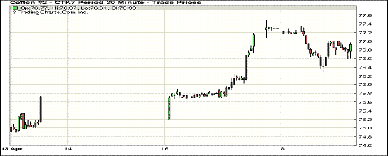 周二紐約期棉震蕩盤旋,1705合約收于76.82美分/磅,跌21點(diǎn);1707合約收于78.16美分/磅,跌1點(diǎn);1710合約收于73.95美分/磅,漲45點(diǎn)。開盤后1707合約受賣盤壓力,午前跌至77.47美分/磅,隨后買家返場(chǎng)支撐,使其收盤前重回78美分一線。1712合約終日在17點(diǎn)之間微幅整理,收于74.41美分區(qū)間高位。鑒于孟加拉成衣制品的多樣化及出口貿(mào)易的擴(kuò)大趨勢(shì),USDA在近日?qǐng)?bào)告中將17/18年度孟加拉棉花進(jìn)口量預(yù)期由16/17年度的600萬包增至620萬包。17/18年度USDA詳細(xì)的全球棉花供需預(yù)測(cè)將于5月10日首發(fā)。