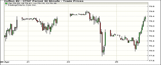 周二紐約期棉合約價(jià)格近升遠(yuǎn)跌,近月合約漲幅在57至90點(diǎn)不等。1705合約收于80.71美分/磅,漲62點(diǎn);1707合約收于79.36美分/磅,漲57點(diǎn)。開(kāi)盤(pán)后主力合約1707承壓跌至77.97美分低點(diǎn),下午買(mǎi)家返場(chǎng)支撐其走高,收盤(pán)前最后幾小時(shí)內(nèi)合約在144點(diǎn)交投區(qū)間頂部,終收于79.36美分/磅。25日為1705第二通知日。市場(chǎng)上美棉現(xiàn)貨供應(yīng)趨緊,買(mǎi)家看增17/18年度美國(guó)新棉種植及產(chǎn)量。