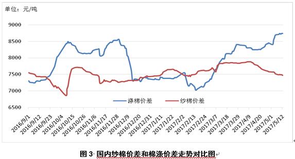 4月28日-5月4日,美棉簽約量達(dá)7.04萬噸,創(chuàng)三周新高,美國農(nóng)業(yè)部發(fā)布的5月份全球產(chǎn)需預(yù)測顯示,2017/18年度全球棉花消費(fèi)量仍高于產(chǎn)量,庫存消費(fèi)比為75%;截至4月底,2016/17年度澳棉的簽約量已占預(yù)計產(chǎn)量的80%以上,印度新棉上市量累計達(dá)到500萬噸,占預(yù)期產(chǎn)量的86.37%,但印度棉花出口遭遇阻力和國內(nèi)需求增長乏力導(dǎo)致印度棉花價格持續(xù)小幅下跌,同時,印度紗價格持續(xù)下調(diào),但仍高于越南同支數(shù)紗。