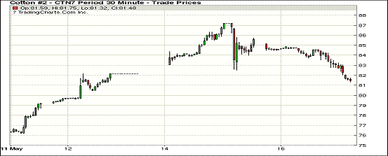 周二紐約期棉價(jià)格止?jié)q反跌,近月合約跌幅在65至400點(diǎn)不等;1707合約收于81.32美分/磅,跌400點(diǎn);1710合約收于76.92美分/磅,跌185點(diǎn)。當(dāng)日主力合約1707整日受賣盤打壓一路下跌,回吐此前交易日漲幅收跌于81.32美分;1712表現(xiàn)偏弱且呈窄幅震蕩,收于74.34美分。7/12價(jià)差較前一日1000余點(diǎn)縮至698點(diǎn)。