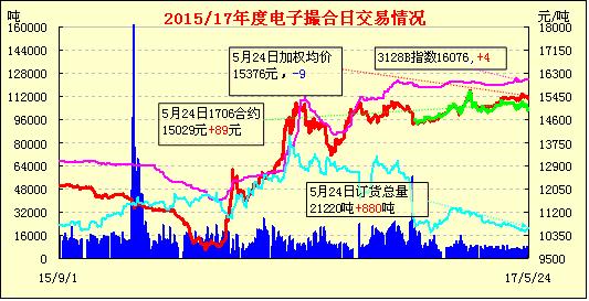 5月24日電子撮合交易成交量減少,合同均價(jià)多數(shù)收漲,活躍交投主要集中于中遠(yuǎn)期合同。據(jù)部分紡企介紹,近期訂單有減少趨勢,實(shí)際成交企業(yè)優(yōu)惠100-150元/噸,但仍不能吸引客戶采購。因此,生產(chǎn)中低紗企業(yè)對原料的采購?fù)瑯映窒麡O態(tài)度,國儲(chǔ)地產(chǎn)棉銷售遭遇下游抵制,上游競拍自然也就熱鬧不起來