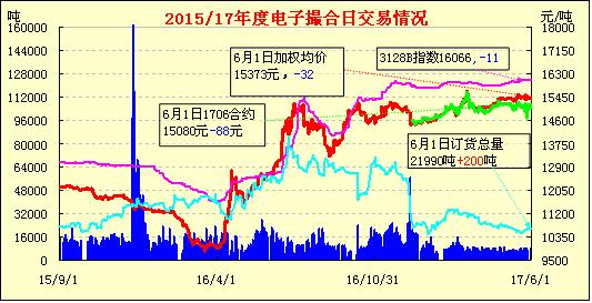 6月1日電子撮合交易成交量減少,合同均價全部收跌,活躍交投主要集中于中遠期合同?,F(xiàn)貨市場延續(xù)調(diào)整走勢,湖北等地地產(chǎn)3128級、4128級提貨價格在15300元/噸、14700元/噸毛重,實際商談仍有一定優(yōu)惠讓利,詢價看貨不多。而質(zhì)量較好疆棉價格堅挺,詢盤略多,江蘇地區(qū)雙29級手摘疆棉提貨價格在17200元/噸現(xiàn)款。