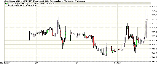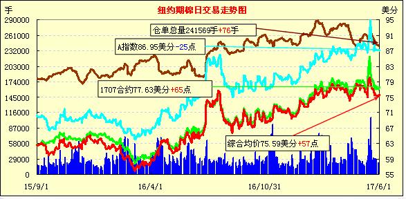 周四美元指數(shù)走低,紐約期棉止跌反彈;1707合約收于77.63美分/磅,漲65點(diǎn);1712合約收于73.50美分/磅,漲71點(diǎn)。開市后,買盤支撐1707合約突破77美分,一度至77.81美分高點(diǎn),后增長(zhǎng)乏力,難以沖破78美分阻力線,回吐部分漲幅收于77.63美分。1712合約收于122點(diǎn)交投區(qū)間高位,最低至73美分線以下。 因本周(5月29日)美國(guó)紀(jì)念日假期,美棉出口周報(bào)延遲至本周五發(fā)布。