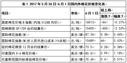 本周,國內(nèi)棉花現(xiàn)貨價(jià)格略跌,鄭棉期貨下跌;國際棉花期現(xiàn)貨價(jià)格小幅上漲(表1)。