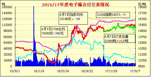 6月7日電子撮合交易成交量增加,合同均價(jià)多數(shù)收跌,活躍交投主要集中于中遠(yuǎn)期合同?,F(xiàn)貨市場疲軟,河北等地地產(chǎn)3128級(jí)價(jià)格在15200元/噸,4128級(jí)在14700元/噸,較上周下滑100元/噸,商談量也出現(xiàn)縮減。長絨棉市場價(jià)格堅(jiān)挺,阿克蘇等地137級(jí)軋花廠提貨價(jià)在21900元/噸毛重,237級(jí)在21000元/噸,目前庫存量相對(duì)較少,低品質(zhì)為主。雖整體價(jià)格堅(jiān)挺,但成交量不佳,多移庫內(nèi)地。