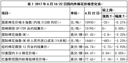 目前國內(nèi)棉花進(jìn)入盛蕾期,長勢好于去年同期,據(jù)國家棉花市場監(jiān)測系統(tǒng)最新調(diào)查數(shù)據(jù)顯示,2017年全國棉花實(shí)播面積4757.3萬畝,同比增加372.8萬畝,增幅8.5%,較3月份意向調(diào)查結(jié)果增加3.3%。其中新疆棉花實(shí)播面積同比漲幅為8.9%。本周儲(chǔ)備新疆棉掛牌量趨于穩(wěn)定,地產(chǎn)棉成交率下降。6月16-22日,儲(chǔ)備棉輪出掛牌量14.92萬噸,實(shí)際成交9.03萬噸,成交率60.60%,較上周下降0.26個(gè)百分點(diǎn),成交均價(jià)14833元/噸,較前周下跌88.4元/噸。其中,新疆棉掛牌量5.68萬噸,較前一周增加1659噸,保持100%成交,地產(chǎn)棉掛牌量9.24萬噸,較前一周減少2536噸,成交率35.73%,較前一周下降2.74個(gè)百分點(diǎn)。截至目前,國內(nèi)棉花加工企業(yè)現(xiàn)貨已不多,存積優(yōu)質(zhì)棉花的棉商挺價(jià)、惜售,急需用棉的紡織企業(yè)從鄭棉、商品棉電子撮合市場逢低買入。下游純棉紗、布延續(xù)平穩(wěn)偏弱走勢,實(shí)際商談優(yōu)惠放大,走貨相對(duì)一般。