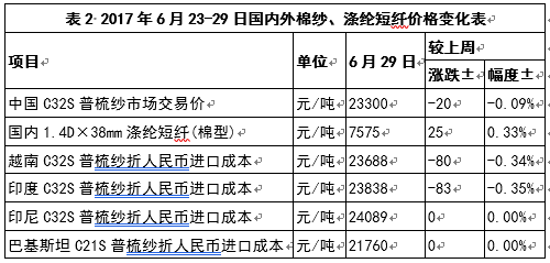 (二)棉紗、滌綸短纖價(jià)格