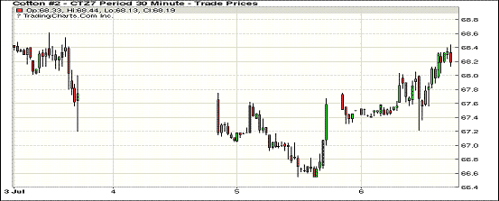 周四紐約期棉繼續(xù)上漲,因美國節(jié)日休假,美棉出口報告發(fā)布推遲一天;1707合約收于75.01美分/磅,漲115點(diǎn);1712合約收于68.35美分/磅,漲69點(diǎn)。周四新花合約開盤后窄幅震蕩,盤中上漲,收盤前在當(dāng)日123點(diǎn)區(qū)間上部交投,在兩個交易日內(nèi)累計(jì)上漲90點(diǎn),本周德州西部和西南部降雨充沛,但美棉新花苗情變差,登記庫存減少,良好的短期技術(shù)指標(biāo)等因素提供了支撐。