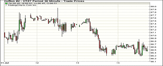 周五紐約期棉市場(chǎng)低位整理,近漲遠(yuǎn)跌,1712合約收于66.58美分/磅,漲21點(diǎn);1803合約收于66.11美分/磅,跌5點(diǎn)。當(dāng)日12月合約整日波動(dòng)區(qū)間較窄,早盤在66.6美分一線波動(dòng),交易中期沖擊67美分失敗后跌至66.4美分以下,受紡織廠買盤支持尾盤略有反彈,以小跌收盤。美國(guó)德州高原地區(qū)因前期干旱造成的損失在評(píng)估過程中,初步預(yù)計(jì)該地區(qū)棄耕率約18-20%。美國(guó)農(nóng)業(yè)部相關(guān)機(jī)構(gòu)在進(jìn)行美棉產(chǎn)量測(cè)產(chǎn),估計(jì)在8月10日將完成整理。