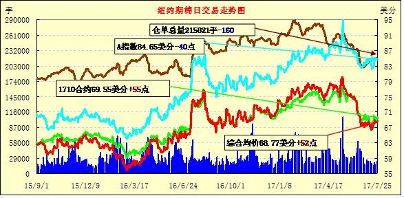 周二紐約期棉所有合約小幅收漲,成交保持低迷;1712合約收于68.83美分/磅,漲54點(diǎn);1803合約收于68.56美分/磅,漲51點(diǎn)。當(dāng)日主力合約延續(xù)前一日走勢(shì),全天以窄幅震蕩為主,最高價(jià)68.97美分/磅,未能突破69美分一線,合約反彈受阻后下行。據(jù)中國(guó)海關(guān),7月中國(guó)進(jìn)口棉花總量為7.2萬(wàn)噸,2017年累計(jì)進(jìn)口量為63.6萬(wàn)噸,較去年同期增加48.3%。2016/17年度(美棉年度),中國(guó)進(jìn)口棉主要為美棉,年度進(jìn)口美棉量已經(jīng)達(dá)到233.5萬(wàn)包。