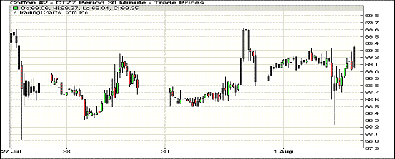 A指數(shù)開始引用新年度指數(shù),較上年度未期同等價(jià)低6-7%;1712合約收于69.31美分/磅,漲45點(diǎn);1803合約收于68.69美分/磅,漲44點(diǎn)。周二開盤后主力合約緩慢上漲,盤中賣出增加使合約價(jià)回到跌幅區(qū)間,但跌勢未能持續(xù),合約在收盤前完成反彈。主力合約在兩個(gè)交易日內(nèi)上漲51點(diǎn)。國際棉花咨詢委員會(huì)8月預(yù)測上調(diào)2017/18年度期末庫存,由上月預(yù)測的1715萬噸上調(diào)至1880萬噸,同時(shí)產(chǎn)量和消費(fèi)也微幅上調(diào)。