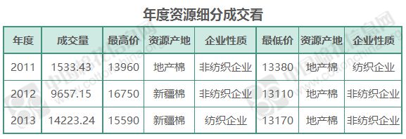 8月15日儲備棉輪出銷售資源29683.561噸,實(shí)際成交25413.809噸,成交率85.62%.當(dāng)日最高成交價(jià)16750元/噸(2012年度新疆棉),最低成交價(jià)13110元/噸(2012年度地產(chǎn)棉)。成交平均價(jià)格14125元/噸(較前一日價(jià)格跌25元/噸);折3128價(jià)格:15332元/噸(較前一日價(jià)格漲18元/噸)。當(dāng)日單捆最高加價(jià)2260元/噸(2012年度新疆棉),單捆最低加價(jià)20元/噸(2011年度地產(chǎn)棉2捆,2012年度地產(chǎn)棉5捆,2013年度地產(chǎn)棉5捆)。紡織企業(yè)家數(shù)占比:64.45%,非紡織企業(yè)家數(shù)占比:35.55%。