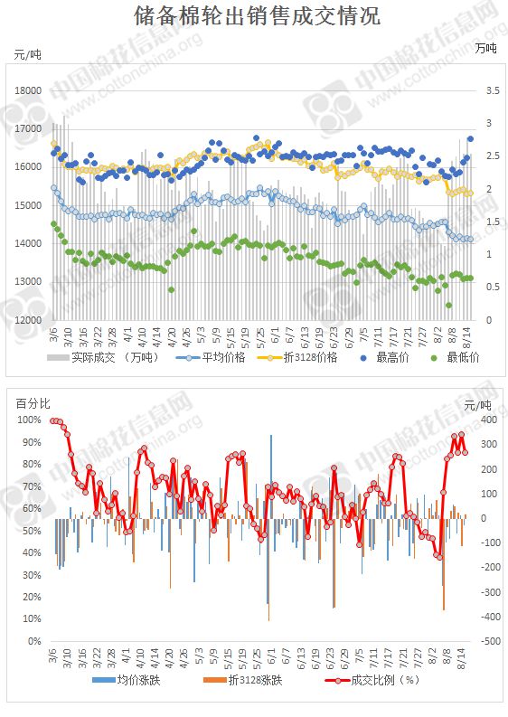 2017年3月6日至8月15日,儲備棉輪出累計(jì)成交232.25萬噸,成交率67.86%。