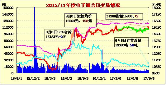 9月6日電子撮合交易成交量減少,合同均價(jià)多數(shù)收漲,成交積極合約主要集中于中遠(yuǎn)期合同,MA1712成交量最大,為1710噸;訂貨量減少,其中MA1711減少最多,為350噸;合同均價(jià)多數(shù)收漲。