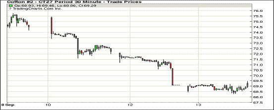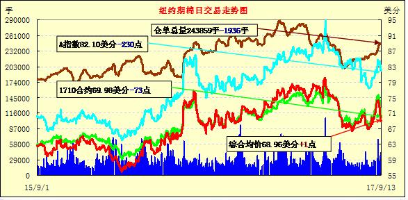 周三紐約期棉止跌,合約漲跌互現(xiàn);1712合約收于69.09美分/磅,跌2點;1803合約收于68.60美分/磅,漲13點。在經(jīng)歷了兩天暴跌后,周三主力合約主要呈調(diào)整走勢,合約在一天內(nèi)多起伏,最低至68.31美分/磅,為8月25日以來最低水平。近來兩場颶風帶來的損失尚未完成評估,美國農(nóng)業(yè)部9月預(yù)測并不包含颶風造成的減產(chǎn),美棉增產(chǎn)幅度預(yù)估未來可能還將下調(diào),但過剩局面不變。