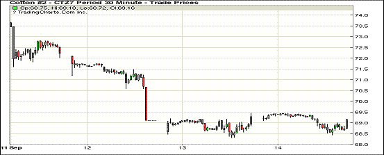 周四紐約期棉保持調(diào)整,合約漲跌互現(xiàn);1712合約收于69.12美分/磅,漲3點(diǎn);1803合約收于68.53美分/磅,跌7點(diǎn)。當(dāng)日主力合約開(kāi)市后上漲,最高價(jià)69.45美分/磅,合約回落后下跌并保持在跌幅區(qū)間,最低價(jià)68.43美分/磅,收盤(pán)前再次上漲,最終微幅收漲。因本月USDA上調(diào)本年度美棉出口量,至9月7日美棉累計(jì)簽約達(dá)到49%,上年度同期為34%,累計(jì)簽約量高出去年同期204.6萬(wàn)包。