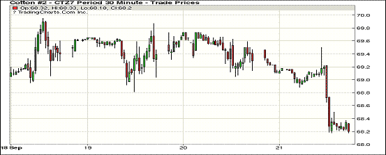 因?qū)︼Z風(fēng)“瑪利亞”的擔(dān)憂減弱,周四紐約期棉再次下跌;1712合約收于68.25美分/磅,跌100點(diǎn);1803合約收于67.58美分/磅,跌93點(diǎn)。當(dāng)日主力合約高開(kāi)低走,當(dāng)日跌破69美分,并保持在當(dāng)日交投區(qū)間低位。至9月14日一周美國(guó)本年度陸地棉簽約21.99萬(wàn)包,下年度簽約3.71萬(wàn)包;本年度美棉簽約量達(dá)到預(yù)計(jì)出口量的51%,裝運(yùn)量達(dá)到預(yù)計(jì)出口量的8%。