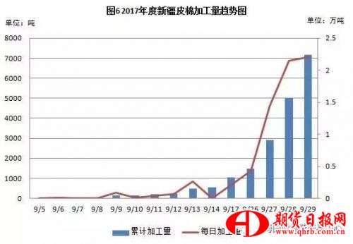 作為市場晴雨表的的新疆籽棉收購價基本一天一價,高于去年同期水平。今年新疆棉花產(chǎn)量顯著高于去年,但面對龐大的軋花廠產(chǎn)能,搶購炒作預(yù)期成為必然,讓市場特別擔(dān)心是否會出現(xiàn)高開低走的不利局面。