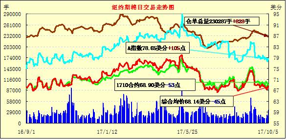 上周美棉簽約量不及預(yù)期,紐約期棉小幅下跌;1712合約收于68.27美分/磅,跌53點(diǎn);1803合約收于67.68美分/磅,跌23點(diǎn)。當(dāng)日主力合約在美棉出口數(shù)據(jù)公布后下跌,之后多次反彈但失敗,收盤前合約在低位震蕩,最終跌0.8%。本年度第9周美棉簽約4.2萬(wàn)噸,其中包括3.7萬(wàn)噸陸地棉和0.5萬(wàn)噸皮馬棉,累計(jì)簽約量達(dá)到預(yù)計(jì)出口量的53%;裝運(yùn)2.7萬(wàn)噸,達(dá)到預(yù)計(jì)出口量的10%。